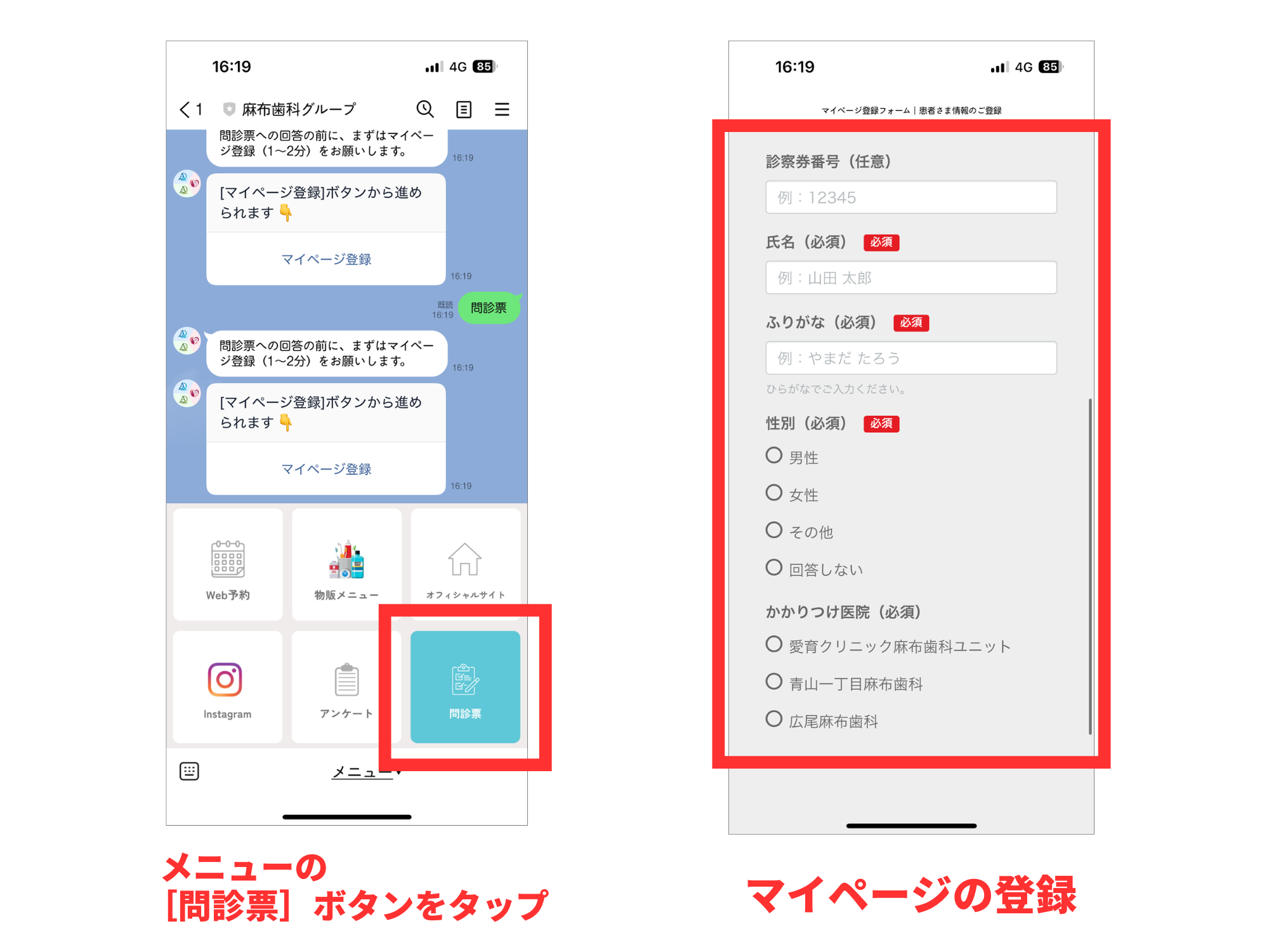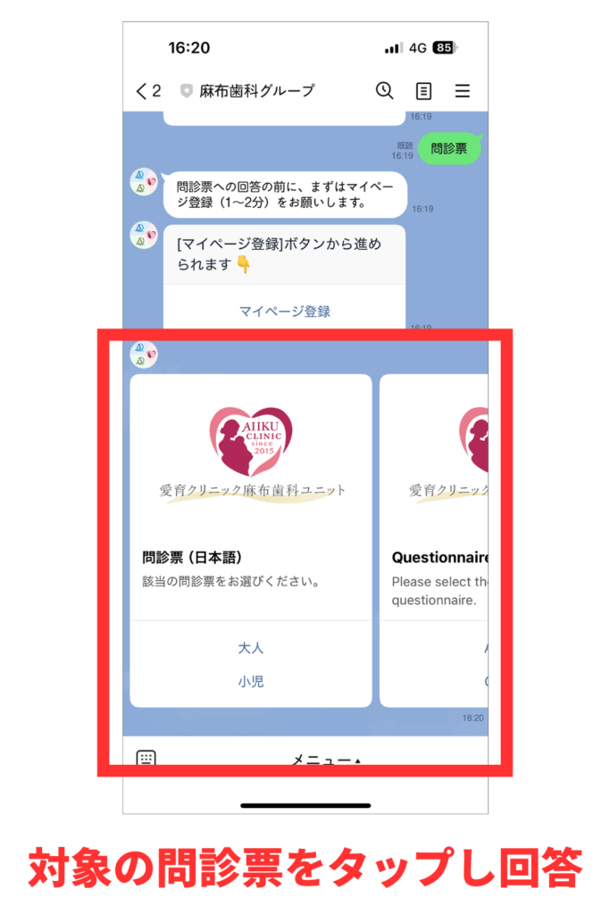 ご来院前に回答が完了している場合は、受付スタッフにその旨をお伝えください。